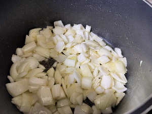 (야채를 볶다가 수분이 나와서 끓이게 됩니다. )