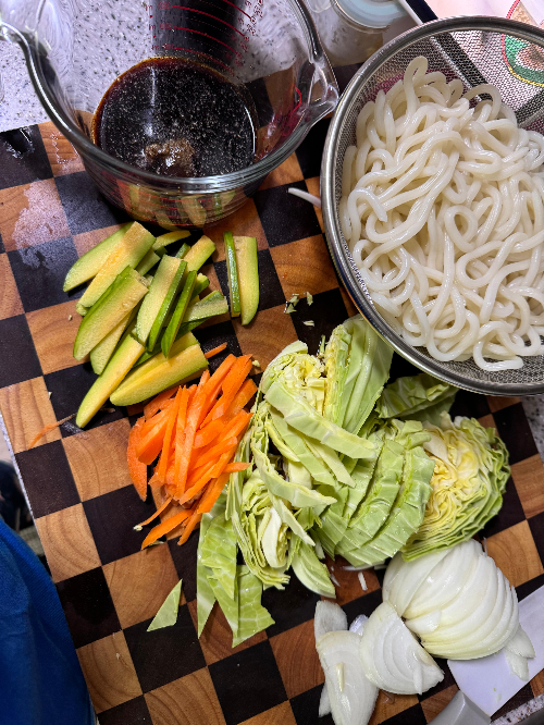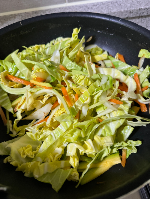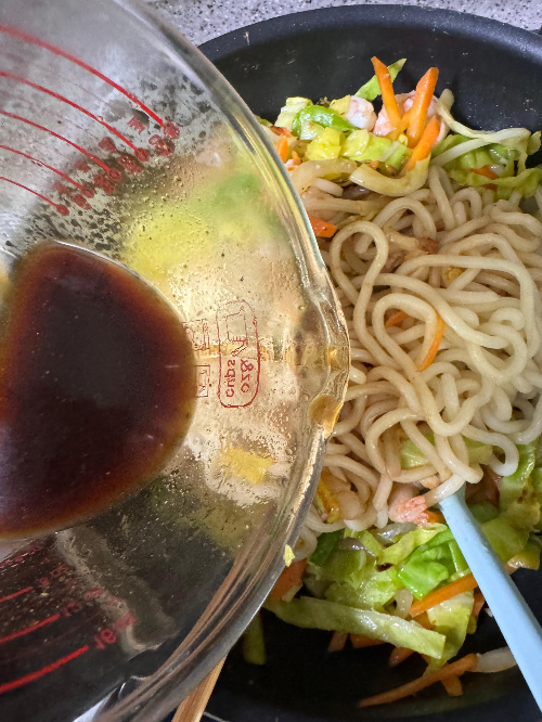 볶는시간을 줄일라고 면은 살짝 삶아줬어요.