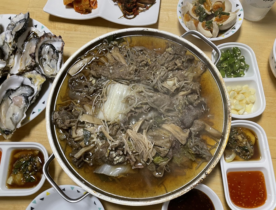 소고기야채전골 + 석화 + 계란장 + 북어국