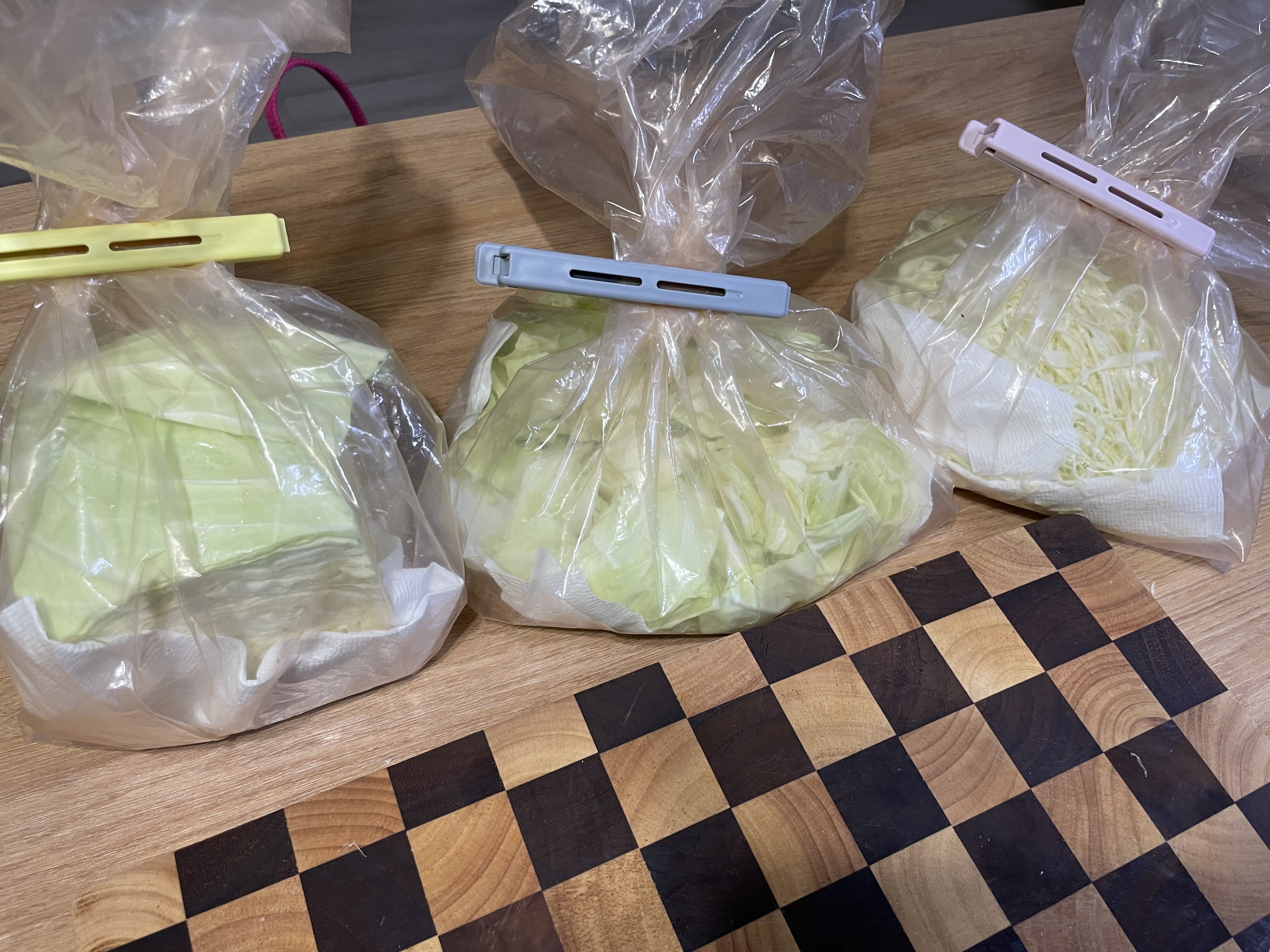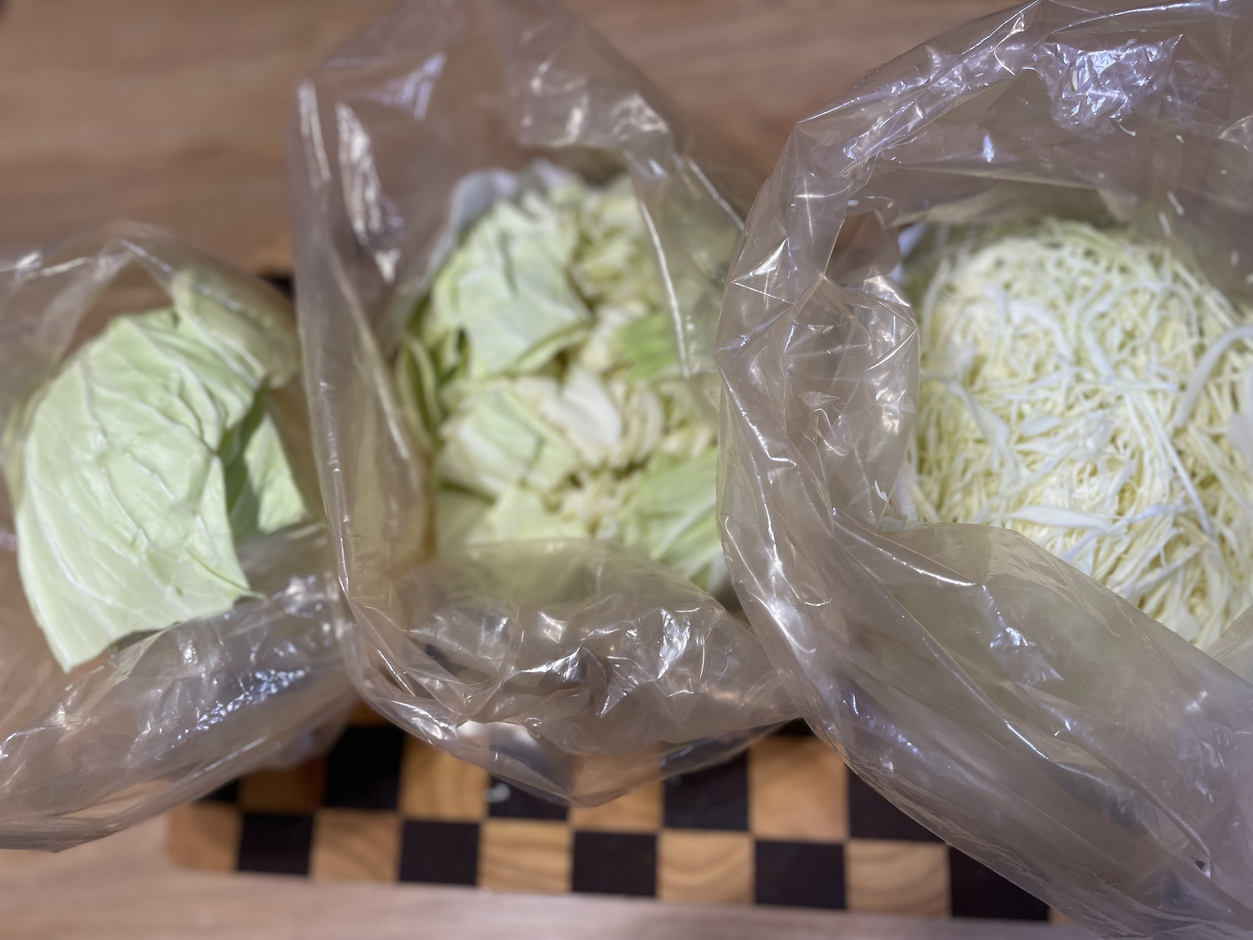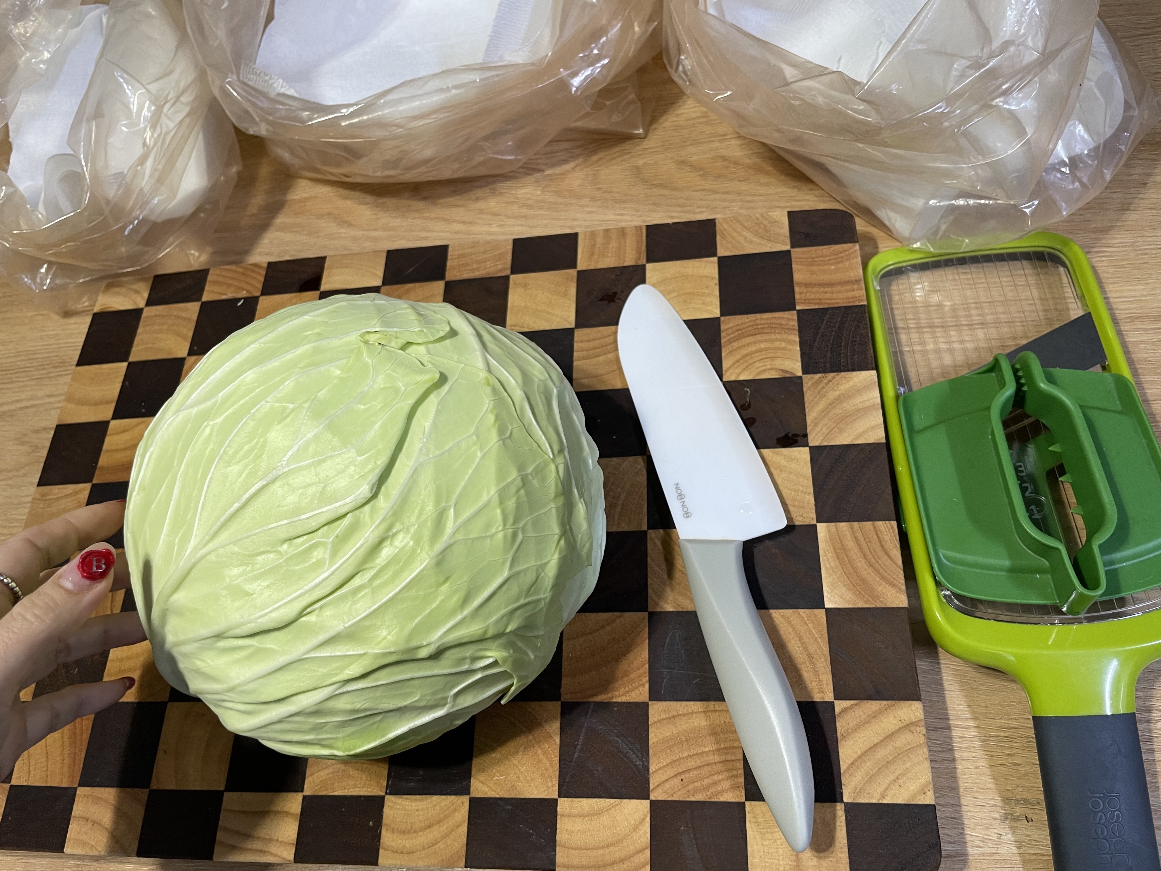 양배추 한통, 소분할 봉투(모프레쉬 봉투) , 채칼