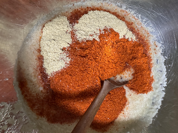 갈아준 양념에 고춧가루랑 분말육수 한봉 넣고