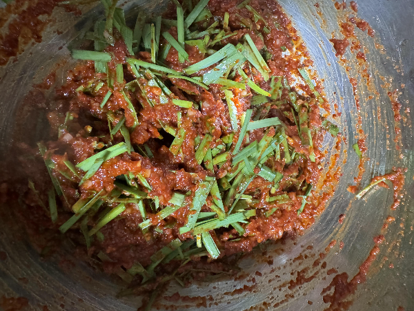 부추만 넣고 양념해 줬어요.