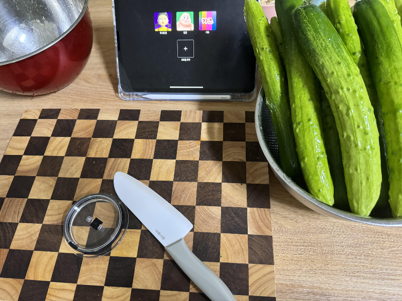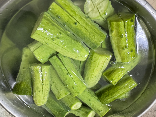 25분정도 절여주니 오이는 아주 잘 절여졌어요.