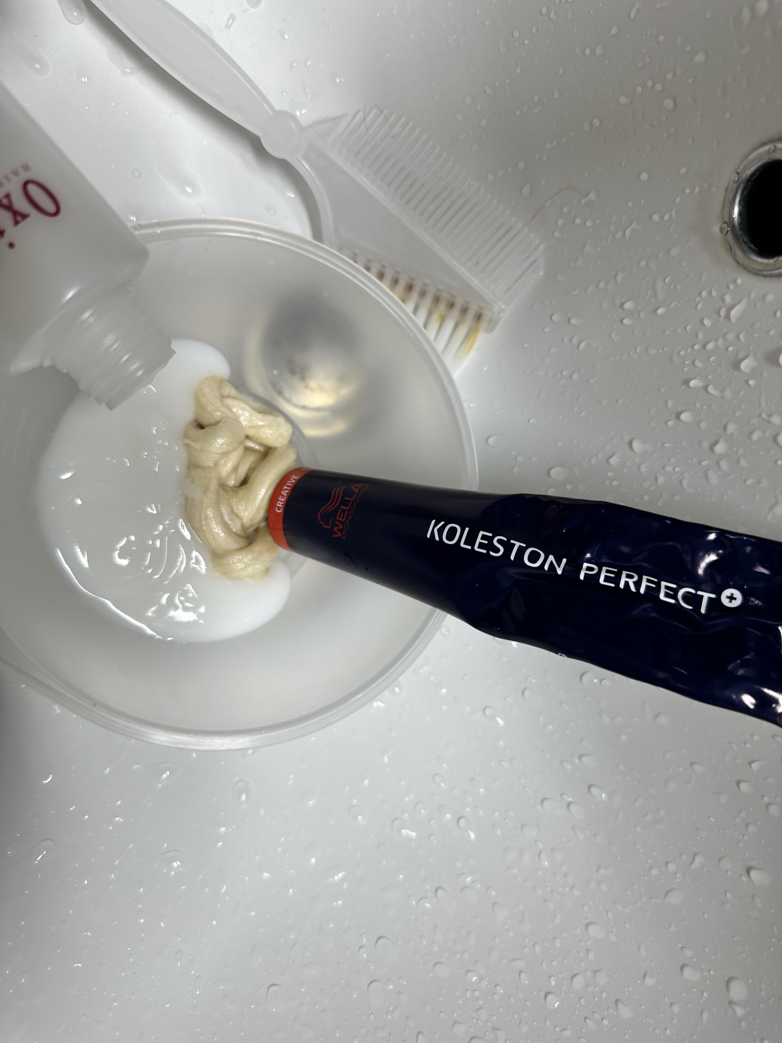 염색약과 산화제를 반반 섞어서 사용했어요~