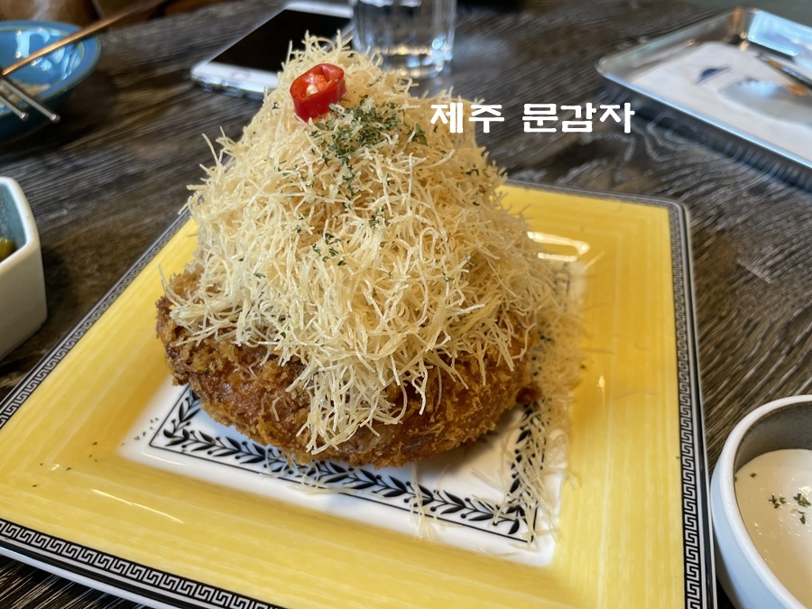문감자라고 부드러운 제주감자와 쫄깃한 문어를 튀겨만든 메뉴에요