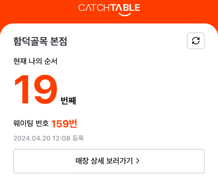웨이팅 19팀... 20분 정도 였어요... 금방이죠??