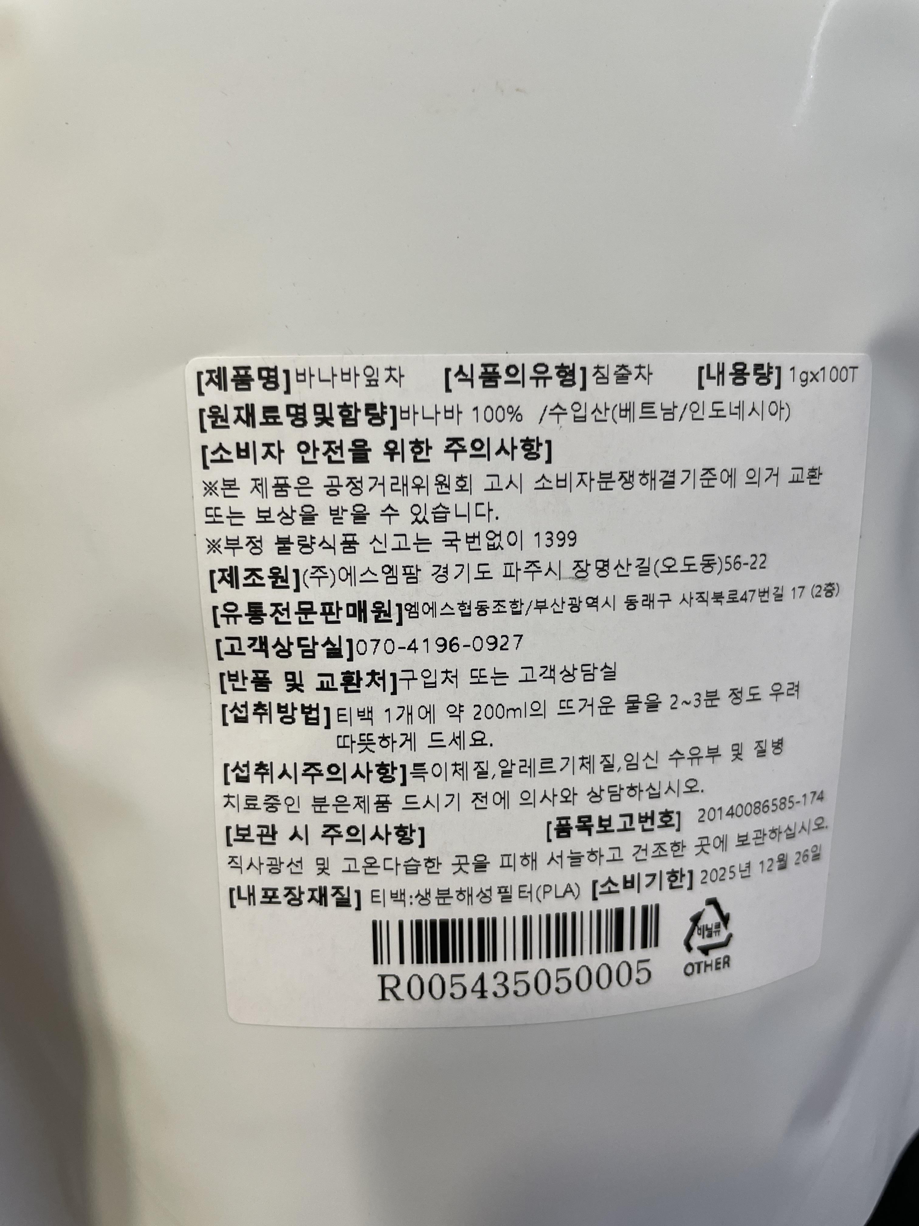바나바잎차 티백 또한 바나바잎이 전부네요..