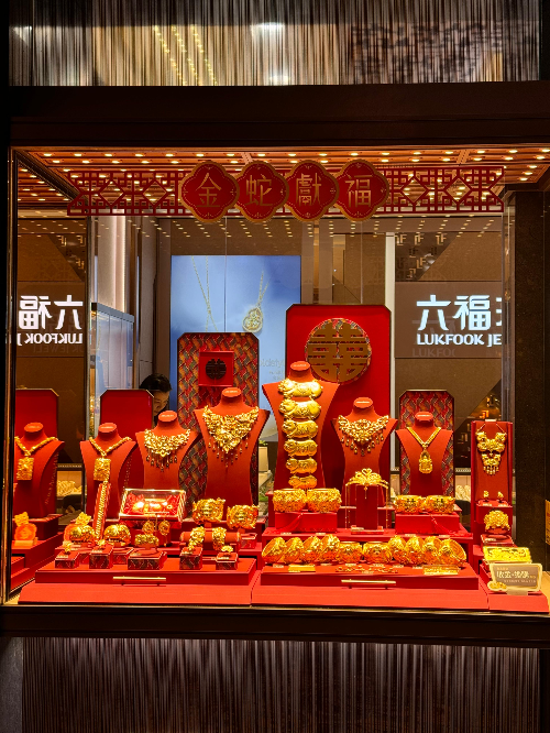 쇼핑몰 대부분이 금과 붉은색..
